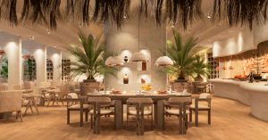 Это будет Lira — большой ресторан ближневосточной и средиземноморской кухни с очень приятным интерьером, во всяком случае, судя по рендерам. В будущем обещают открыть и крытую веранду-оранжерею.