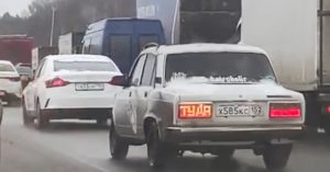 Машину заметили сегодня утром на МКАД. «Наверное, ищет поворот на Сколково», — шутит телеграм-канал «Изнанка Москвы», опубликовавший видео.