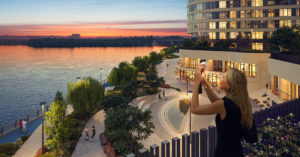 На первом уровне стилобата жилого комплекса, выходящем на набережную, спроектируют больше 2 тыс. кв. м площади под уличную торговлю. Там откроют рестораны, кафе, салон красоты, магазин фермерских продуктов, а на набережной запланированы современные лежаки, скамейки, детская площадка и кафе, а также открытый кинотеатр и зона для выставок. Проект благоустройства набережной разработало архитектурное бюро Ind architects, они известны работой над проектом «Дом с маяком» — первым московским детским хосписом.