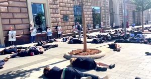 На Новинском бульваре опять акция — десятки людей легли на землю