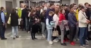 В телеграм-каналах появилось сразу несколько видео, на которых видно, что пассажирам приходится протискиваться к турникетам. Причем толпа на другом видео начинается прямо от дверей метрополитена.