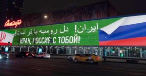 Надпись с флагами двух стран гласит на русском и персидском: «Иран, Россия с тобой». При этом в персидской версии допущена ошибка в слове «Россия» — в переводе получается «Росбя». На это указали источники Еловского.
