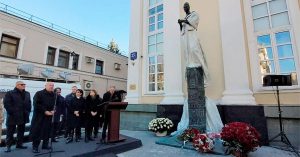 Тот памятник, который сегодня торжественно открыли на Остоженке, сделан скульптором Александром Рукавишниковым и архитектором Михаилом Посохиным по инициативе Регионального общественного фонда культурных и гуманитарных программ Ростроповича.