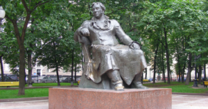 На Патриарших фрагмент памятника баснописцу Крылову упал на рабочего, копавшего рядом с ним