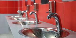 Там установили новые унитазы, раковины, сушилки для рук и диспенсеры с жидким мылом.