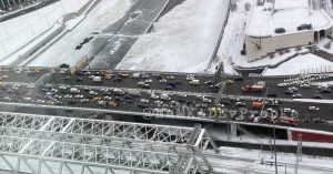 Из-за аварии перекрыты несколько полос для движения против часовой стрелки, так что пробка растянулась уже больше чем на 3,6 км, и в том числе поэтому счетчик показывает 6 баллов. Если куда-то собираетесь, то явно лучше выбирать объездной маршрут.