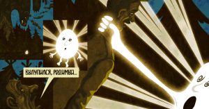 Первая выставка беспроигрышная — под кураторством Павла Пепперштейна собрали 30 современных художников (среди них Ринат Волигамси, Таня Пеникер, Иван Разумов, Сергей Ануфриев, Вова Перкин и Виктор Пивоваров), которых попросили нарисовать комиксы, посвященные разным главам романа Пепперштейна и Сергея Ануфриева «Мифогенная любовь каст». Его выпустили в 1999-м (первый том) и 2002-м (второй том), а сейчас переиздают — к этому событию и приурочена выставка.