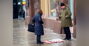 Фотографию опубликовал телеграм-канал «Новости Москвы». На ней видно, как мужчина стоит на Тверской и продает снежки. Он аккуратно разложил их на цветном коврике по размерам, очевидно, чтобы привлечь больше покупателей. Кажется, сработало — на фото, во всяком случае, видно, что к продавцу подошла заинтересованная женщина.