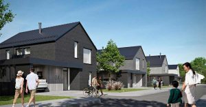 В поселке бизнес-класса обещают построить дома в скандинавском стиле, но с «дерзкой ноткой» (да, действительно так пишут) — легкой асимметричностью фасадов. Всего таких будет 134 штуки, а выбрать можно из пяти разных вариантов — все двухэтажные. Фасады домов сделаны из модного нынче клинкерного кирпича.