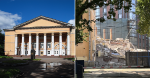 Сам дом обладал лишь статусом исторически ценного градоформирующего объекта, который в отличие от ОКН не дает никаких охранных гарантий. Здания, включенные в этот перечень, сносят не задумываясь. Вот и ДК на Рязанском недавно пустили под ковш. Как сообщает общественное движение «Архнадзор», уже снесена ротонда, а вчера рабочие принялись за портик, и очевидно, что в ближайшее время от дома не останется ровным счетом ничего.