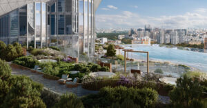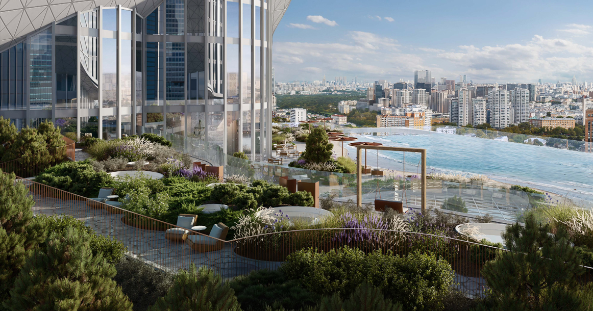 На седьмом этаже нового небоскреба в «Сити» появится парк с «морем», вдохновленный Куршской косой