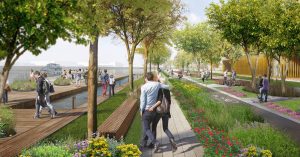 После реконструкции на набережной появятся велодорожки, лавочки, газоны и пирсы.