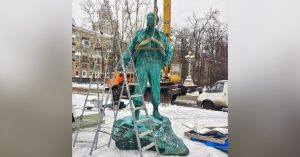 А прямо сейчас, как сообщают жители в районной группе Airport/Sokol Da Neighborhood, на площади начали установку памятника. Скульптура в полтора раза выше человеческого роста почти идеально похожа на макет, но за одним существенным исключением — она покрыта зеленым налетом, больше свойственным окислению меди, а не бронзы (впрочем, возможно, памятник был патинирован специально). Сами жители в комментариях тоже сразу же обратили внимание на неожиданный цвет «Фиделя»: «Больше диктаторов, зеленых и разных!»