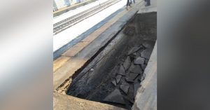 На станции Подрезково провалился асфальт — образовалась огромная дыра