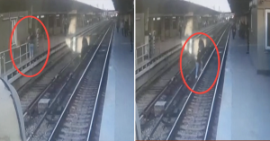 Правда, дойдя до противоположной платформы, молодой человек почему-то передумал (или понял, что не сможет сам залезть на нее) и тем же самым путем вернулся обратно, где, по всей видимости, полицейский подал ему руку, помог подняться и сразу указал дорогу в отделение.