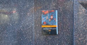 На стене рядом с Трубной площадью кто-то приклеил книгу Оруэлла «1984»