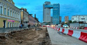Фотографии разрытой дороги появились в районных чатах и урбан-телеграм-канале Look right. Линия, согласно планам мэрии, должна пройти вдоль исторических домов по северной части улицы. Местные жители сообщают, что с другой стороны также идет вынос коммуникаций для прокладки новых путей.