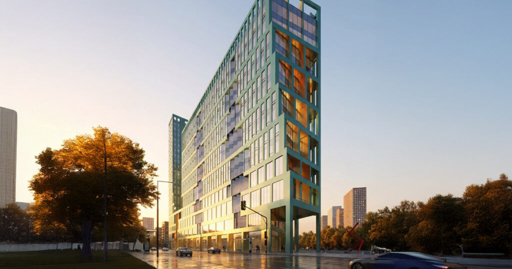 Двадцатиэтажный многофункциональный комплекс класса А займет 43 тыс. кв. м. С 5-го по 14-й этаж будет занимать офис, также в МФК расположатся четырехзвездочный отель, спортивный кластер, термальный центр и торговая галерея с фудхоллом.