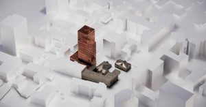 Как именно будет выглядеть новое здание, пока не известно — есть три варианта. Один — массивный прямоугольник 39 метров высотой (примерно 12 этажей), фасад которого равномерно покрыт кубами. Второй — крупная угловая конструкция с двумя «рогами», отдаленно напоминающими китайские пагоды. Высота одной — 39 метров, другой — 35. Ну а третий — две более или менее тонких башни, соединенных общим первым этажом.