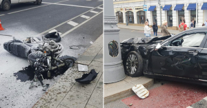 На Трубной площади байкера отбросило на зебру после столкновения с BMW — он задел пешехода