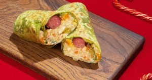 «Новогодняя шаурма “Оливье с колбаской” от “Торпеды” — это традиционные овощи для главного зимнего салата (картошка, морковь, зеленый горошек, соленые огурцы), а еще колбаска из говядины, домашняя пшеничная лепешка и горчичный соус с майонезом. Очень вкусно. И смешно, чтобы Новый год был веселее (лучше), чем прошлый», — рассказывают в пресс-службе «Торпеды». Безусловно, есть немало приверженцев рецепта оливье именно с колбасой, но скажем прямо: у шефа довольно нетрадиционное представление о том, какой должна быть «колбаска» в этом салате.