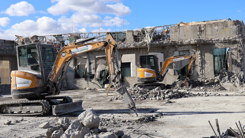 Снос центра начался в 2024-м. Работы провели по технологии поэтапного демонтажа сверху вниз (top-down), специально придуманного для объектов в условиях плотной городской застройки.