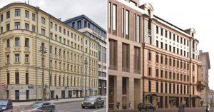 Предполагается, что на месте доходного дома появится гостиница — прямо рядом с «Интерконтиненталем». На рендере ее можно увидеть правее, это вид из Старопименовского.