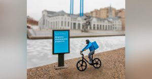 Образ маленького человека, если подумать, хорошо применим к курьерам и их работе. Художница Анна Гордеева решила раскрыть тему подробнее и создала маленькие фигурки курьеров, которые теперь появились на улицах Москвы — это такая акция.