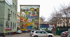 В свое время — а точнее, в бытность Сергея Капкова министром культуры Москвы — в столице проходил фестиваль «Лучший город Земли». В его рамках на отвесных и глухих стенах Москвы появились граффити и мурали (настенные росписи) — от абстрактных рисунков до сцен из городской жизни. Их авторами были знаменитые граффитисты, а заказчиком — город, точнее, департамент культуры вместе с департаментом благоустройства. Среди художников был и Вова Nootk, расписавший здание по улице Гиляровского и распределительный пункт МОЭСК рядом с ним мультяшными персонажами. Сегодня эта работа была уничтожена — приехала машина с лебедкой, и маляры вернули стене ровный цвет.