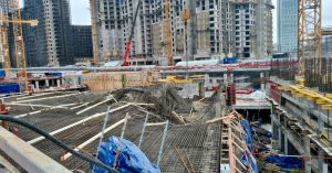 Конструкции рухнули во время работ по заливке опалубки в строящемся ЖК «Событие-4» на площади около 300 кв. метров.
