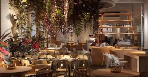 Интерьер ресторана также подчеркнет «первобытную» концепцию. Конечно, сидеть на камнях никто гостей не заставит, зато зал будет обильно украшен растительностью (в том числе папоротниками — одними из древнейших высших растений), свисающей даже с потолка. А еще помещение обещают декорировать «костями мамонта».