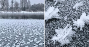На водоемах распустились «ледяные цветы» — это редкое природное явление