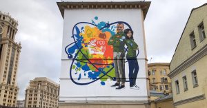 Мы все ждали — когда же, когда же нам будет явлен пример настенной росписи в точном соответствии с законом? И вот он — первое за долгое время новое граффити, причем сразу в центре Москвы, на Зацепском Валу. Оно посвящено выдающемуся событию — 60-летию славного движения студотрядов. Вот вам настоящий их образ. Это крепкие, здоровые молодые люди на фоне мастерка, каски, пятна краски и почему-то мирного атома большого размера (причем тут студенческие трудовые отряды?). Жаль, конечно, что розовощекий идеализм победил реализм — хорошо бы в композиции нашлось место, например, выдающемуся пьянству, в советское время царившему в студотрядах. Немного иронии этому гениальному шедевру не помешало бы.