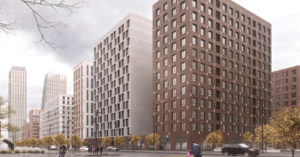 Так, фасады 12-го корпуса будут бордово-коричневого цвета, а между окон возникнут маски керамических зайцев (архитектурные излишества XXI века, не иначе). Другое здание, корпус №11, будет высотой в 15 этажей, в нем появится золотая 22-метровая арка (уже на рендерах она как будто притягивает к себе все внимание). Не обойдется и без декоративных элементов, выполненных из металла того же оттенка. Над обликом всех трех зданий работали несколько архитектурных бюро, среди которых Buromoscow, Sergey Skuratov Architects и Meganom.
