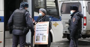 «У здания Верховного суда задержали Ольгу Бакст. Она стояла с плакатом “Спасибо, Мемориал, ты помнишь о нас”», — цитирует «ОВД-Инфо» (признан на территории России иноагентом) Ольгу Лебедеву из «Мемориала».