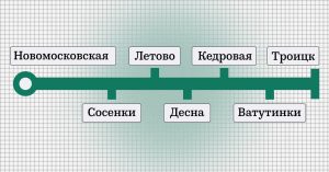 Уточняется, что метро «Сосенки» появится на пересечении улиц Старые Сосенки, Летовского Ополчения и Проектируемого проезда №7032. Станция «Летово» будет расположена напротив дома №112 по Летовской улице, «Десна» — на пересечении Центральной улицы и шоссе Ракитки. «Кедровую» откроют на пересечении 1-й Нововатутинской улицы и Калужского шоссе, а «Ватутинки» заработают в Троицке, на улице Кварцевой. Завершение строительства намечено на 2029 год.