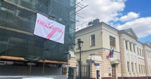 Напротив здания посольства Латвии на улице Чаплыгина сегодня появился матерный баннер с логотипом «Дождя» — и первым делом фотография была опубликована в телеграм-канале Марии Захаровой. Представитель МИДа в посте заявила, что службы госбезопасности Латвии переживают из-за того, что в страну переезжают журналисты «Дождя», «Новой газеты», «Медузы»* и других независимых российских СМИ. Поэтому сами спецслужбисты и повесили баннер, написала Захарова. И добавила: «Предателей нигде не любят, цену им знают».
