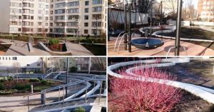 Еще пару лет назад здесь был огороженный пустырь, поросший травой — хоть коров выпасай; обычно на таких — особенно в центре — быстро вырастают высокие и элитные жилые дома. Задний двор Цветного бульвара до последнего времени выглядел уютно, но несколько неопрятно: похожее на сарай бывшее помещение Тверского райсуда, ржавеющая старая лестница, чтобы подняться в горку, а на вершине — футбольное поле и каскад тихих, любимых алкоголиками московских двориков по соседству. Теперь тут красиво.