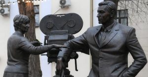 В сквере у главного входа на киностудию Горького на улице Сергея Эйзенштейна теперь можно увидеть команду «Семнадцати мгновений весны» в бронзе. В скульптурной композиции сразу три фигуры: писатель и сценарист Юлиан Семенов, режиссер Татьяна Лиознова и исполнитель роли Штирлица Вячеслав Тихонов.