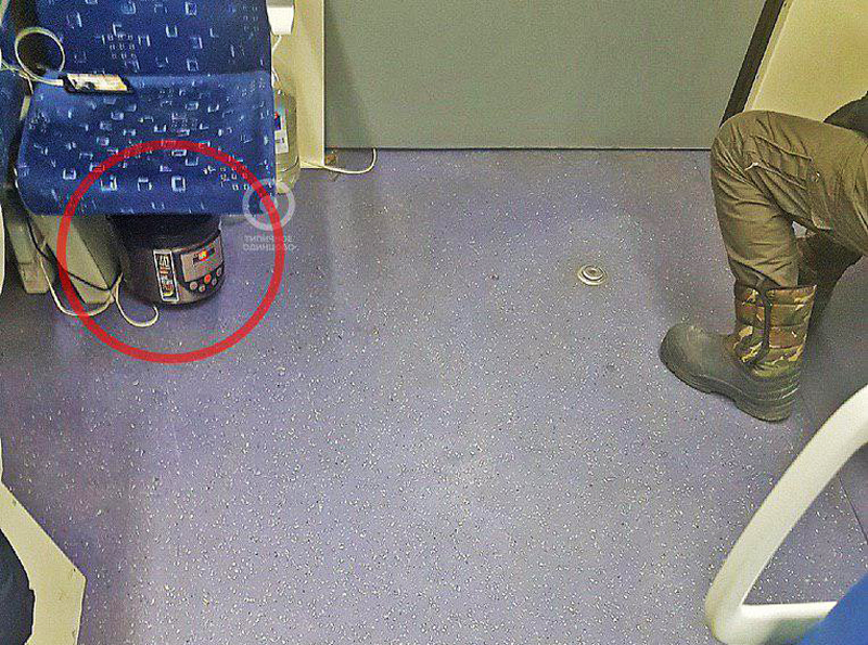 В подмосковной электричке катается работающая мультиварка, в которой готовятся пельмени.