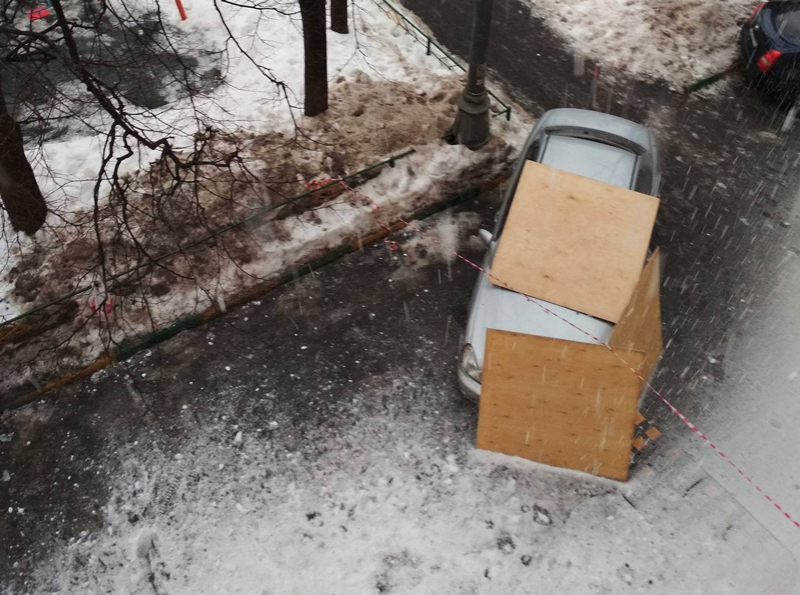 Так поступают жители Кунцево, когда их просят убрать машины перед очисткой крыш от снега.