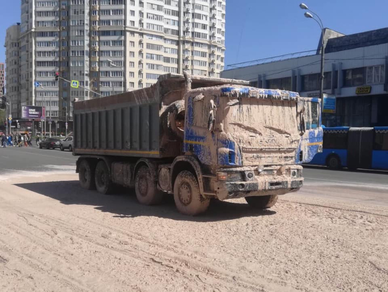 Этого героя обнаружили на «Молодежной». Нет, он не пытался скрыть свой номер, чтобы не платить за парковку, так делают только владельцы «майбахов». Он вез жидкую глину на стройку и резко затормозил, как говорят очевидцы. Как в том анекдоте: погуляли, блин.