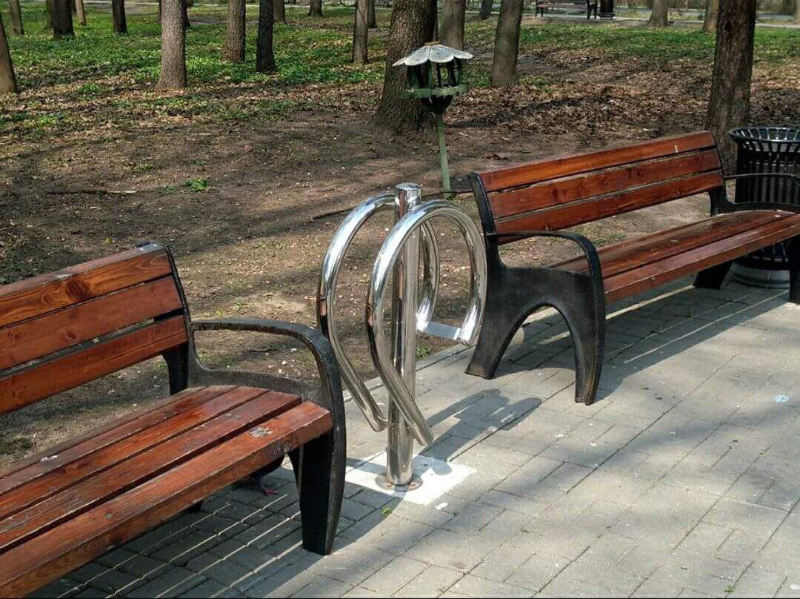 Велопарковку в одном из московских парков нашли читатели телеграм-канала «Московские новости». Все для вашего удобства. Впрочем, можно, сидя на скамейке, пристроить в эту парковку зонт-трость или просто трость, если есть.