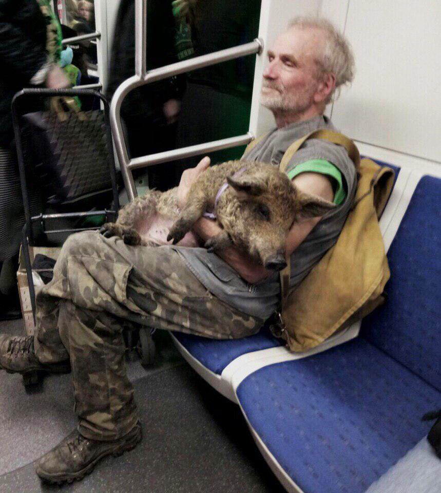 Видимо, на Год свиньи ему подарили мини-пига. Он оказался не совсем мини-, как обычно, но любят его от этого не меньше, вот везут на дачу.