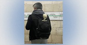 «Наверное, из Питера»: на «Тверской» заметили пассажира со скелетом, торчащим из рюкзака