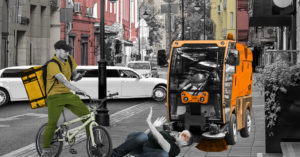 В их адрес не ругался в соцсетях только ленивый, поэтому стоит напомнить, что доля вины за их поведение на дороге лежит на компаниях-агрегаторах с их предельно сжатыми сроками доставки и системой штрафов. Так-то оно так, и все же кажется, что многие курьеры мысленно едут не по Москве, а по Шанхаю или Бомбею с их диким трафиком, в котором в одном потоке мешаются автомобили, мопеды, велосипеды и пешеходы и все при этом дружно игнорируют элементарные правила безопасности. Смотрит курьер в основном в смартфон с маршрутом, а не по сторонам, из-за чего, двигаясь по тротуару, он совершает весьма замысловатые маневры, которые не так-то просто предугадать. Ты налево — и он налево, отпрыгиваешь вправо — и он направо, и лишь в самую последнюю секунду вы каким-то чудом умудряетесь разминуться.