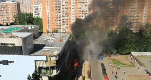 «Ангару» в Нагорном районе снесли одной из первых. Новый красивый районный культурный центр на Чонгарском бульваре с фуд-кортом, супермаркетом, рестораном, кино- и концертным залом и верандой на крыше должен был появиться уже в первой половине 2019 года; так по крайней мере сообщала местная пресса со ссылкой на застройщиков. И вот как раз сегодня здесь произошло символичное происшествие — пожар. В здании полопались уже установленные окна, появилась копоть на фасаде, сообщает издание «Сноб».
