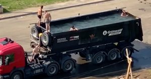 Не завидуйте: рабочие спасаются от жары в бассейне в кузове грузовика