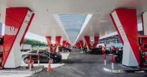 Там установлены 40 постов для заправки топливом и станция зарядки электромобилей с двумя портами скоростной зарядки (на них машина может зарядиться за 30 минут) и одним портом классической зарядки (электрокар заряжается от 6 часов). Автозаправочный комплекс расположен на 12-м км МКАД на юго-востоке Москвы и занимает площадь полтора гектара.