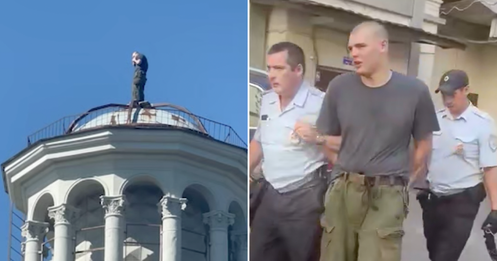 Прохожие, наблюдавшие за эквилибристом, вызвали полицию. «Ассасин» еще до приезда патрульной машины слез с купола и попытался затеряться в толпе, но доблестная городская стража схватила нарушителя спокойствия.